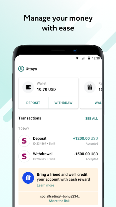 Disediakan aplikasi khusus berbasis Android untuk melakukan social trading.