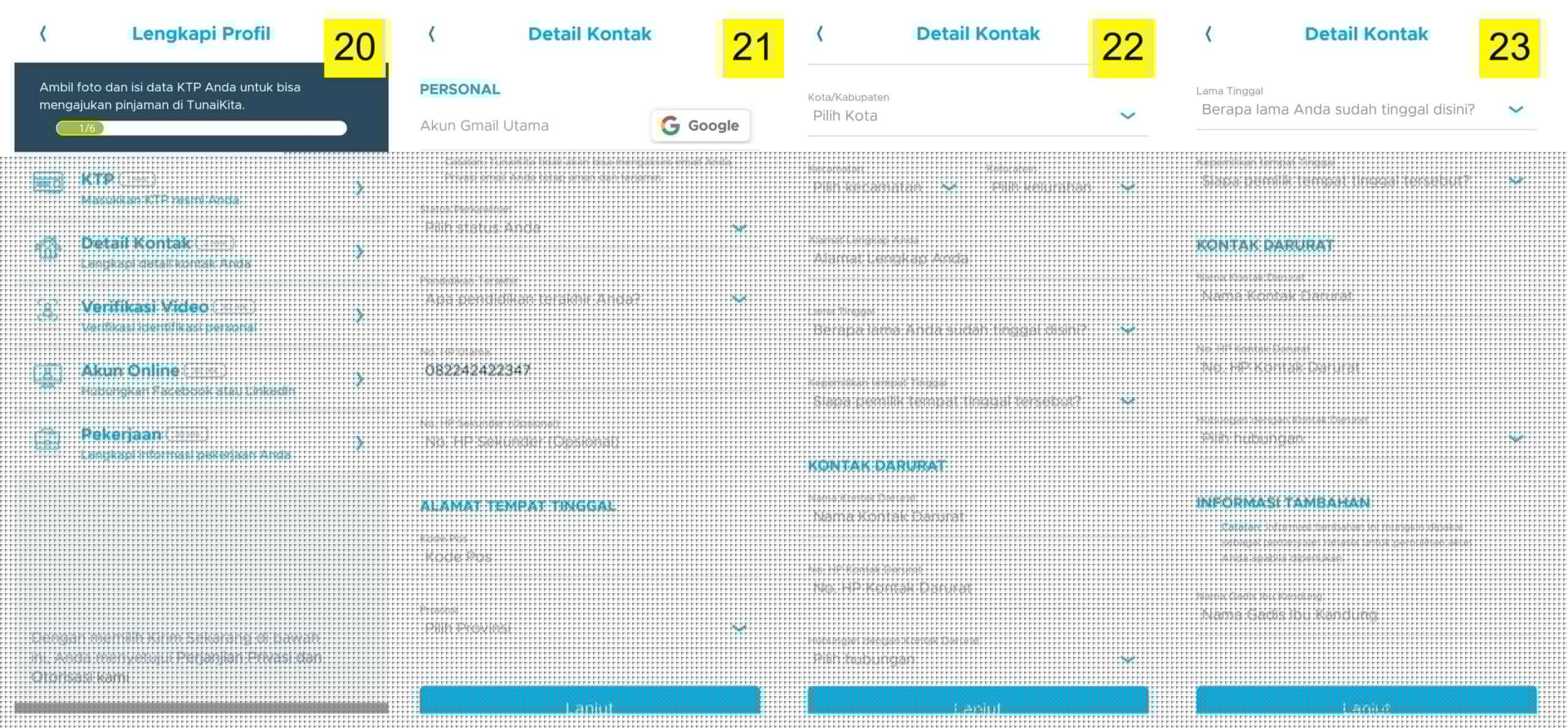 21 - 23. Melengkapi detail kontak yang mencakup data pribadi dan kontak darurat yang cukup lengkap.