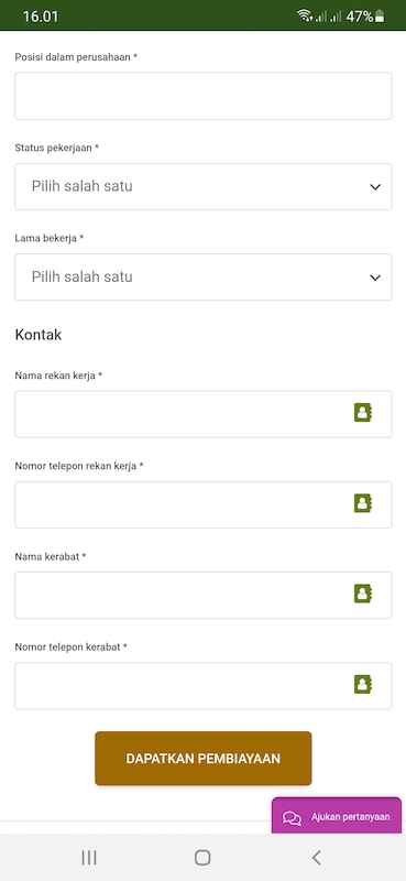 Tahap berikutnya pengisian data pekerjaan dan jumlah penghasilan per bulan. Bagian ini termasuk paling penting karena berdasarkan info ini, fintech menentukan apakah peminjam punya kemampuan keuangan untuk mengembalikan pinjaman atau tidak.