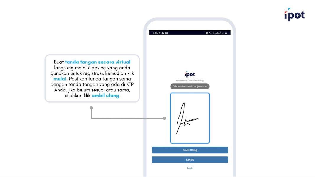 Lakukan tanda tangan di aplikasi. Pastikan tanda tangan sama dengan di KTP.
