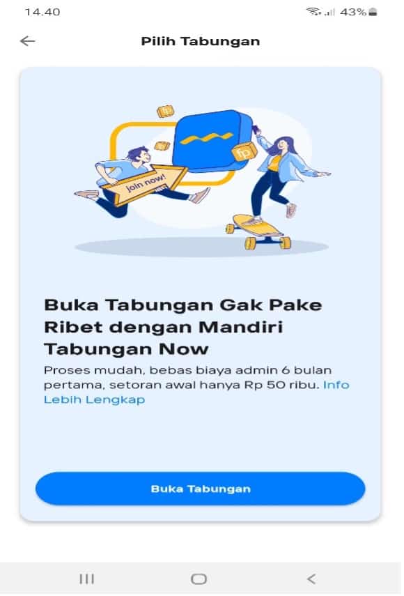 Untuk memulainya, nasabah hanya perlu mencari opsi “Belum Punya Rekening Mandiri” saat pertama kali membuka aplikasi. Kemudian ikuti instruksi dan isi semua data yang diminta mulai dari pemilihan jenis kartu, verifikasi ktp, verfikasi nomor hp dan email, pembuatan PIN, serta data diri lainnya.