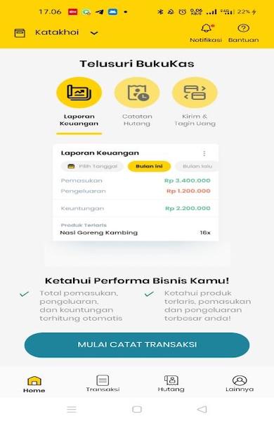 Dengan mempunyai catatan keuangan harian digital dan aplikasi keuangan bisnis di HP, pengusaha bisa mengelola catatan keuangan harian, akuntansi, penjualan, pengeluaran, kasbon, catatan hutang piutang, dan keuntungan usaha.